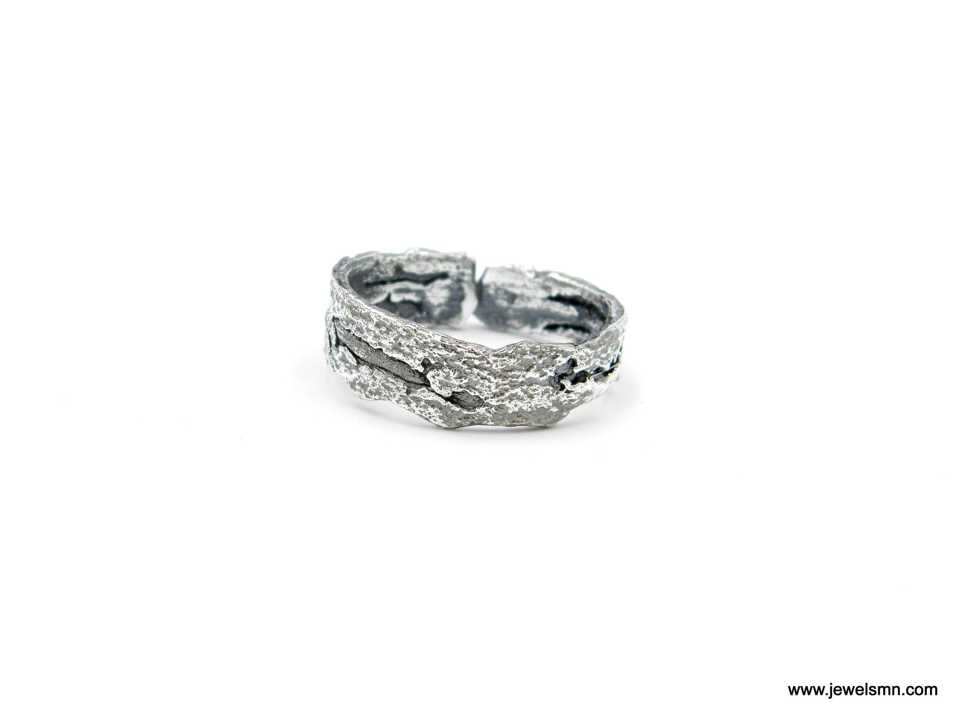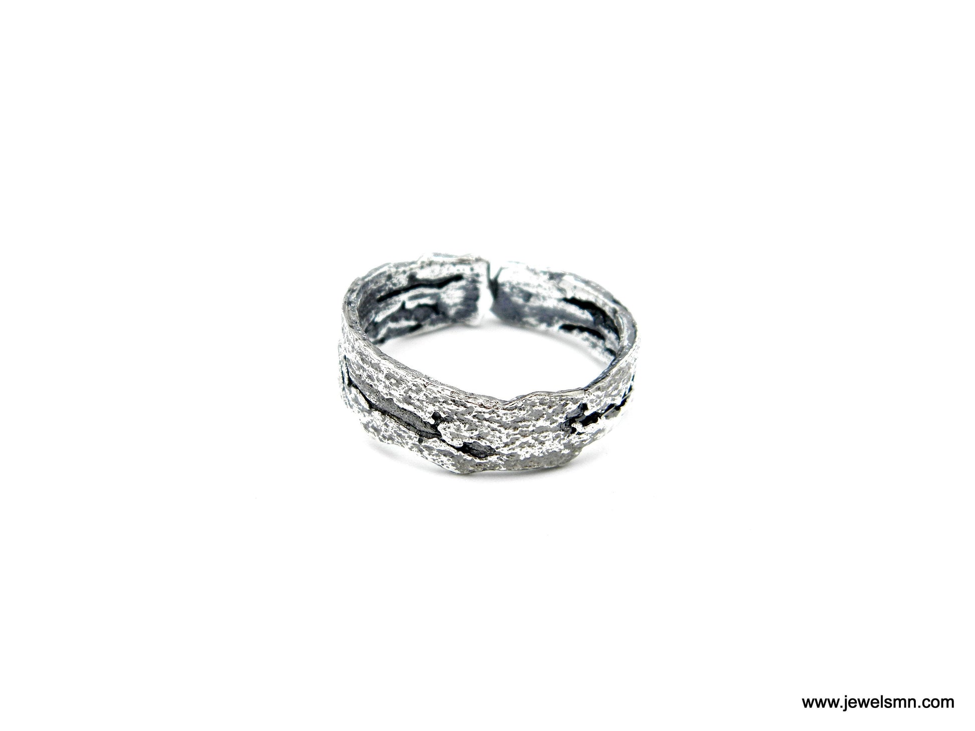 Nature inspired ring Black branch ring in sterling silver for men and women. Forest Tree bark Ring. Nature Inpired Jewelry