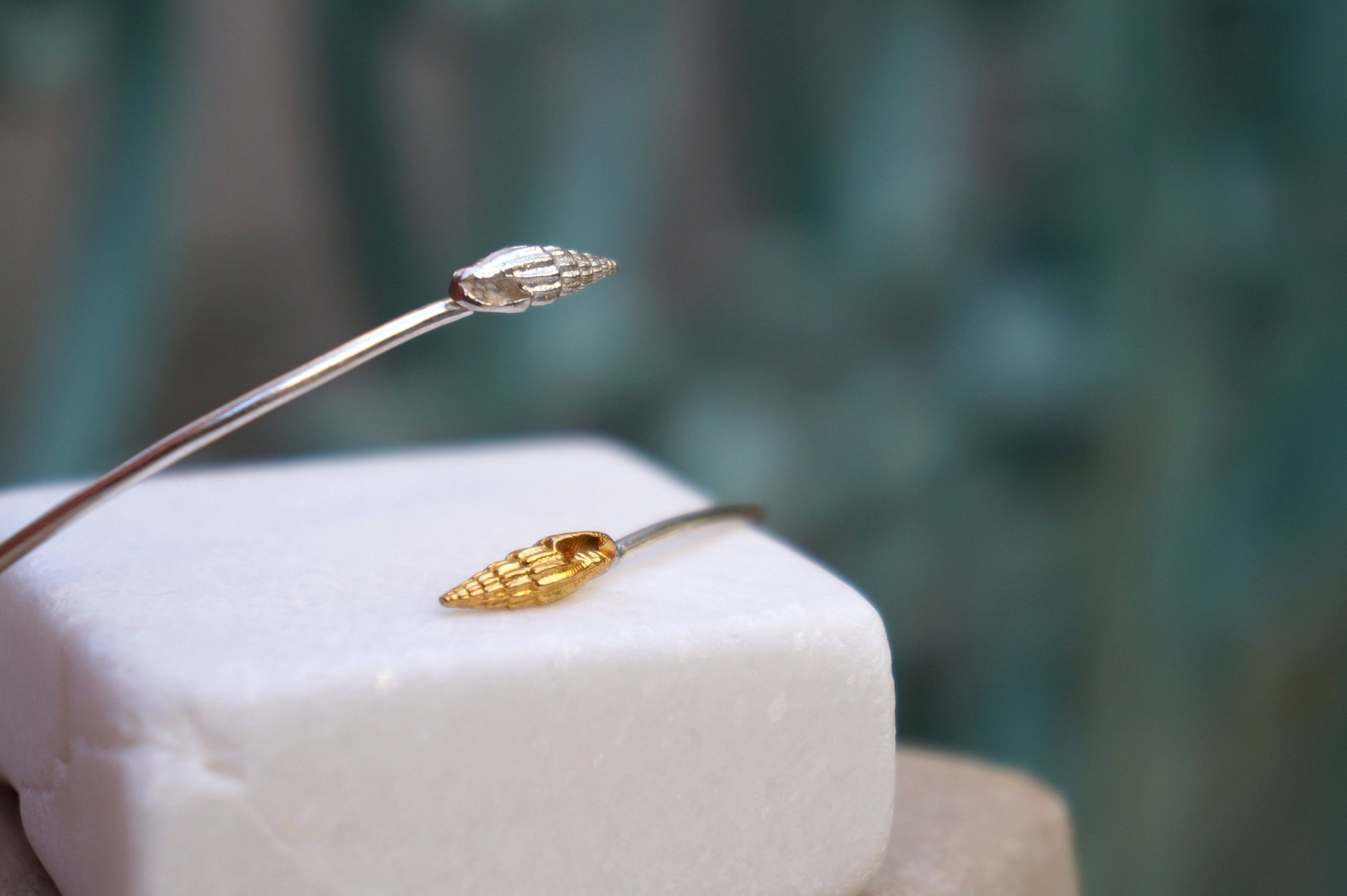 Real Shell cuff Bracelet for Women in Sterling Silver. Adjustable Bracelet, Sea Shells symbolize evolution, life and longevity.
